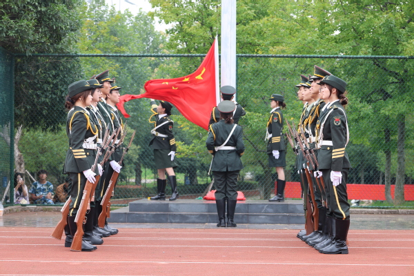 随后的军训成果汇报环节将现场气氛推向高潮。军体拳方阵动作精准,气势如虹;49个受阅方阵身着戎装,迈着铿锵有力的步伐依次通过主席台,口号声响彻云霄。集体合唱《歌唱祖国》深情献礼国庆,展现了新一代学子的昂扬斗志。
