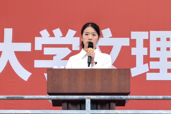 新生代表赵淑娴在发言中倡议同学们知己善学、尊师重道,并与全体新生共同许下“为校添彩、为国献力”的青春誓言。老生代表廖婧凤、教师代表盛茜分别从同辈和师长的角度,分享了成长感悟与殷切嘱托。