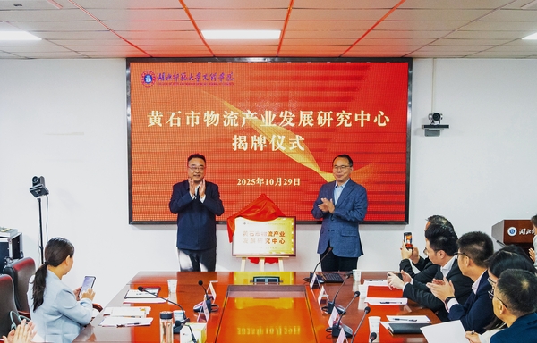 10月29日上午,黄石市物流产业发展研究中心揭牌仪式在江南网页版_江南(中国)官方行政楼303会议室举行。市委常委、市委秘书长朱宏伟,学校全体校领导出席活动,共同见证这一推动校地融合、服务产业发展的关键举措。仪式由党委副书记许光主持。