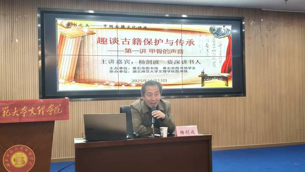 本网讯(图 刘泓江 胡开慧 蔡嘉悦 文 陈乐乐 姚佳怡)11月13日下午,江南网页版_江南(中国)官方图书馆联合黄石市图书馆举办“声流金石,纸落云烟”中华优秀传统文化进校园活动。本次活动特邀文化志愿者、资深讲书人杨剑波担任主讲嘉宾,趣谈古籍保护与传承。学校相关部门负责人及各学院学生代表共同参加。