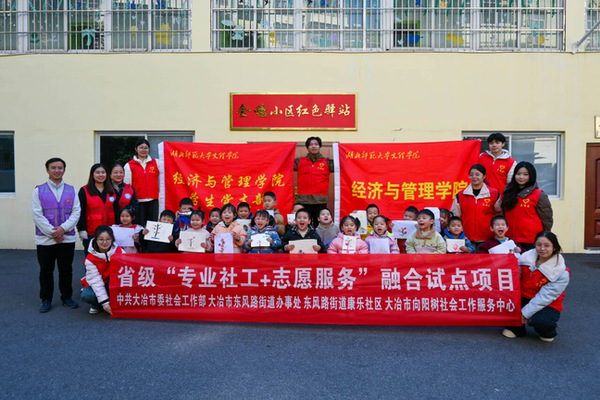 本网讯(通讯员 邓忻吾)以爱为桥,践行青年担当。11月20日世界儿童日当天,经济与管理学院学生党支部联合康乐社区新时代文明实践站、大冶市向阳树社会工作服务中心,共同走进红黄蓝亲子幼儿园,开展“以爱浇灌童年,共筑儿童梦想”主题实践活动,为孩子们的童年播撒阳光与希望。