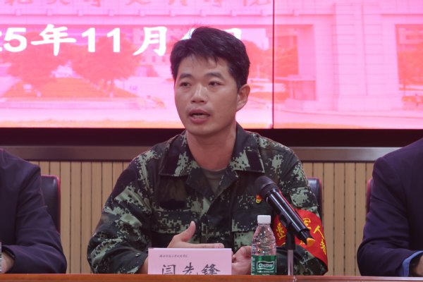 服务队队员代表费智朋在发言中分享了自己从北部战区空军退役复学的经历。他表示,部队生活锤炼了他的意志,教会了他技能与担当。如今重返校园,他渴望将所学所感用于实践,为校园安全贡献力量。“即使脱下军装,我们依然要保持军人本色,以实际行动擦亮‘退役军人’这张名片。”他号召全体队员携手并肩,发扬部队优良传统,守护校园平安,服务广大师生。
