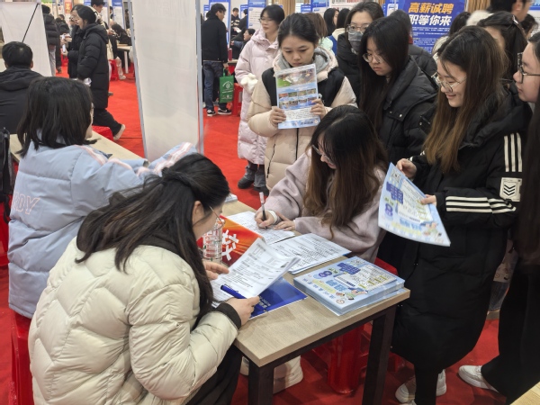 本网讯(通讯员 鲁扬浩 石美纯)12月11日上午,江南网页版_江南(中国)官方联合黄石市人力资源和社会保障局在风雨操场二楼举行“才聚东楚点石成金·百企千岗 就在黄石”2026届毕业生冬季综合类校园招聘会。现场共迎来136家来自省内外的优质企业,提供涵盖电子科技、智能制造、汽车、现代金融、教育传媒等多个领域的就业岗位8704个,吸引了2900多名毕业生现场求职应聘。