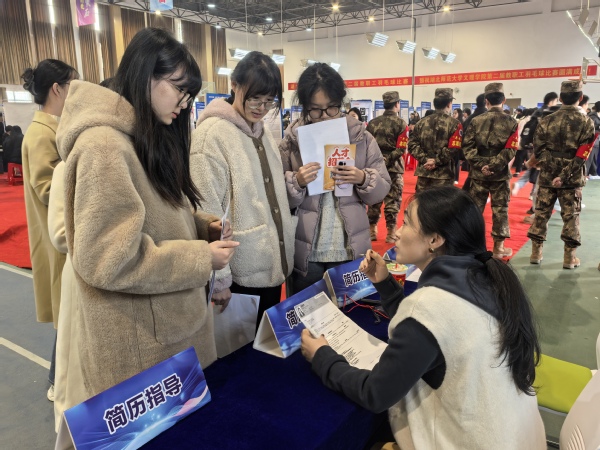 本次招聘会在延续以往高效对接模式的基础上,进一步提升了就业服务的精细度与覆盖面。现场的“简历优化与面试咨询站”前,始终排着等候的队伍。就业指导老师边婷婷结合学生专业特点与应聘岗位需求,逐份分析、现场调整,帮助毕业生突出个人优势。“这份简历结构和内容都不错,但重点不够聚焦,建议把与这家企业技术方向最匹配的项目经历放在最前面。”她一边用笔标注,一边向身旁的学生解释。旁边的自助简历打印点也持续运转,不少学生根据指导建议现场修改、即时打印,实现了“指导—优化—投递”的无缝衔接。