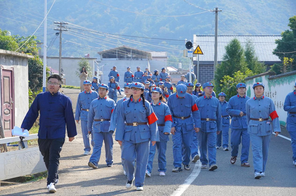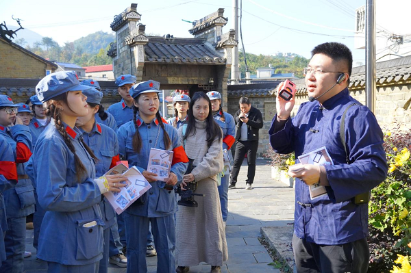 活动当天,学生党员身着红军服,化身“红色引导员”全程参与任务组织与讲解工作,在古村青石板路与红色旧址间开启一场追寻红色印记、体悟隐蔽战线精神的实践之旅。