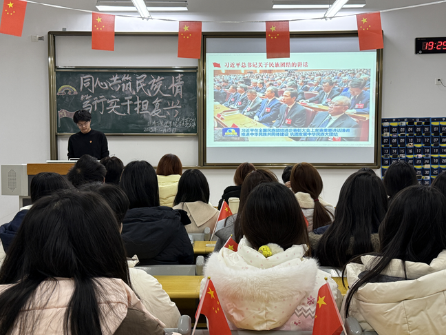 为进一步铸牢中华民族共同体意识,引导青年学子厚植家国情怀、勇担时代使命,经济与管理学院学生党支部于12月15日组织开展“同心共筑民族情,笃行实干担复兴”主题宣讲活动。