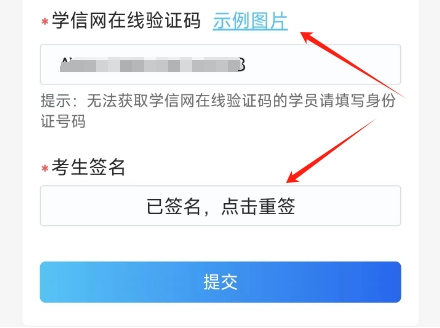 8.填写学信网在线验证码,以便审核.点签字保存后,提交
