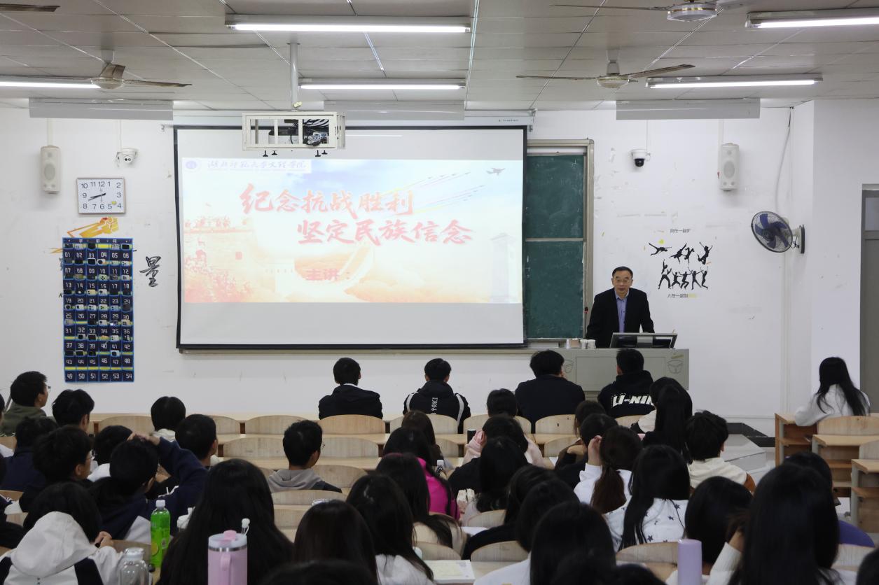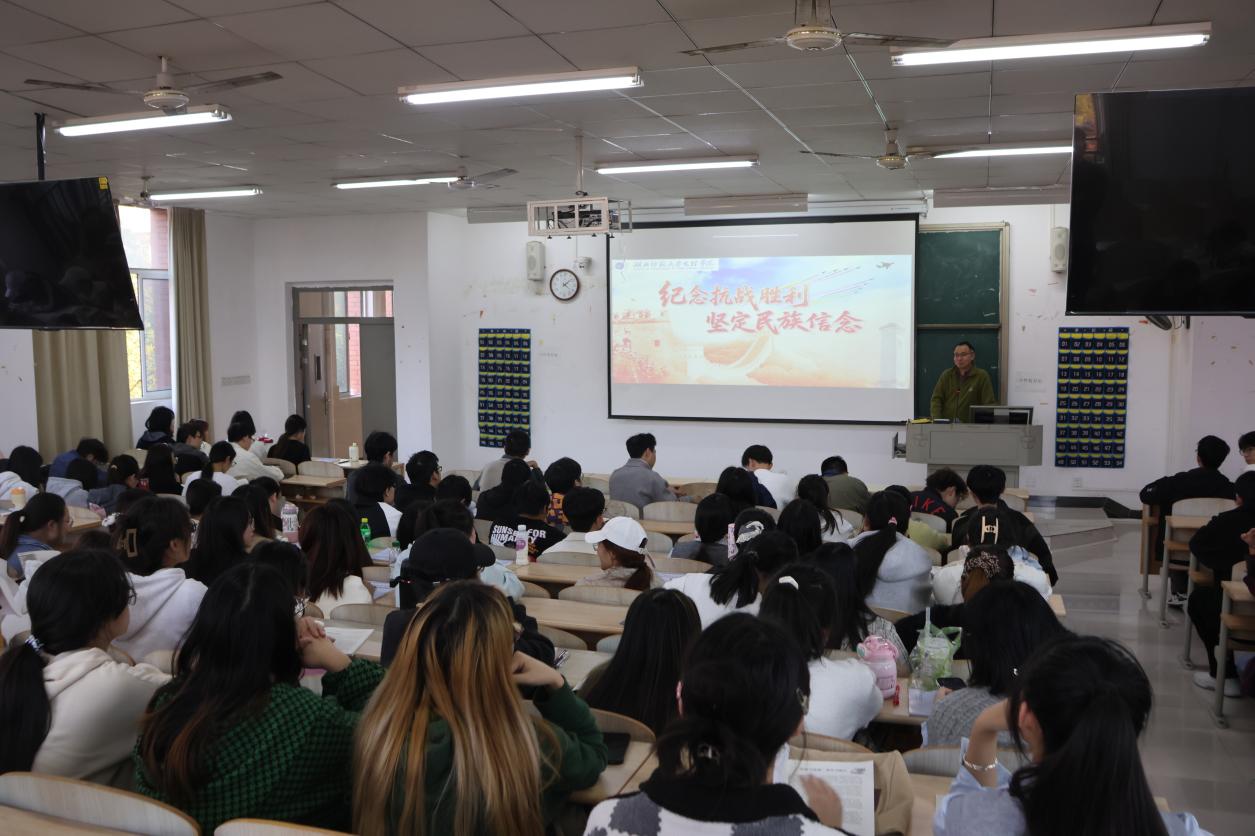 校长李开灿、副校长王胜国围绕纪念中国人民抗日战争和世界反法西斯战争胜利80周年这一主题,分别于10月28日上午、11月13日下午,在1B213、1B311教室进行授课。李开灿带领学生回望艰苦卓绝的抗战历程,清晰说明了中国共产党的中流砥柱作用,深刻阐述了中国人民为世界反法西斯战争胜利所付出的巨大民族牺牲与作出的卓越贡献。他着重指出,青年大学生要警惕历史虚无主义,坚决抵制否认和美化侵略战争的错误言行。王胜国重点解读了中国人民抗日战争伟大胜利的历史意义及其蕴含的伟大抗战精神,他呼吁全体学生铭记历史、缅怀先烈,以史为鉴、开创未来,从伟大胜利中汲取奋进力量,勇担实现中华民族伟大复兴的时代使命。
