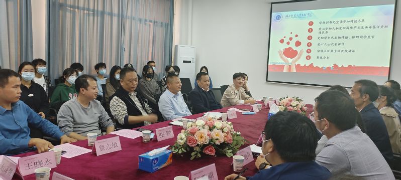 在资助会议正式开始之前,汪玉宝老师介绍了出席此次会议的领导、老师们以及12名社会爱心人士,并且对12名社会爱心人士表示了热烈欢迎和衷心的感谢。接着,她从师生人数、学风建设、考研情况等方面简要介绍了学校和学部概况,最后,她强调同学们要保持坚持不懈、积极乐观的态度去迎接未来的挑战。在签订资助协议书环节中,每位资助人与每位受资助学生共同完成签字并握手。待所有协议书签字完毕后,受助学生代表杨诗雅和陈珂两位同学上台发言,她们表明自己会用实际行动去证明自己,不辜负资助人的帮助,表示会尽自己最大的努力回馈社会和学校。