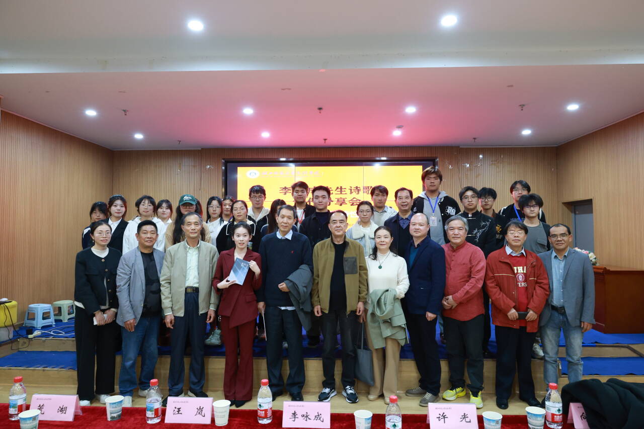 2025年11月6日下午,江南网页版_江南(中国)官方人文学院举办“绽思想之花,耀诗性光芒”李咏成先生诗歌创作分享会。学校董事长李咏成、党委副书记许光、黄石市政协副主席汪岚、市文史委主任及市作协主席邹晓芳等嘉宾与人文学院师生代表齐聚一堂,共赴一场诗意之约。