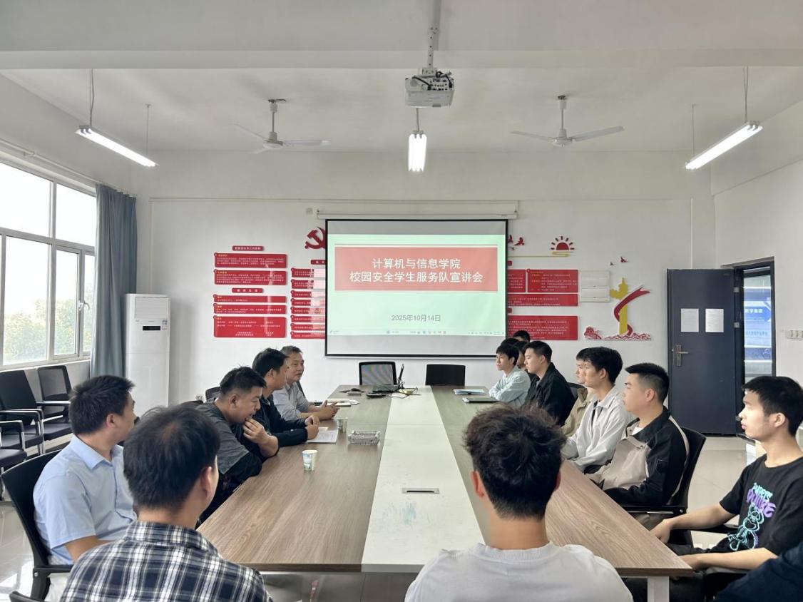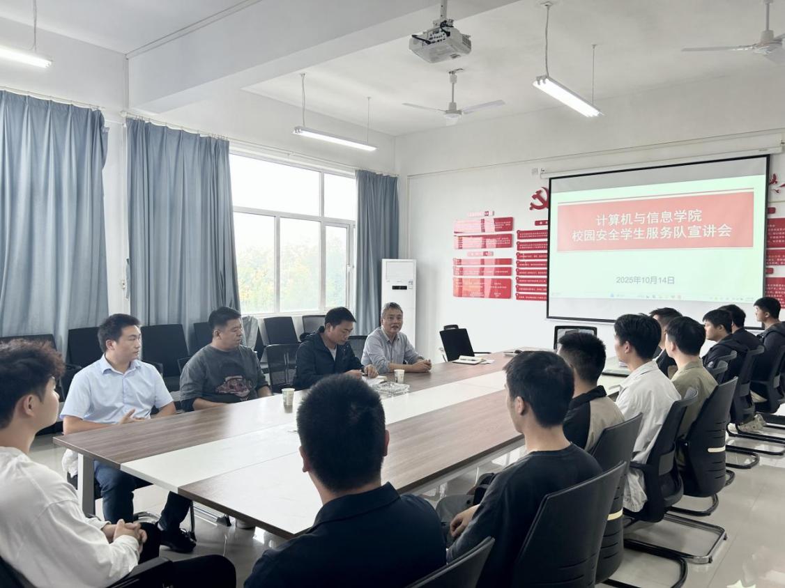 为切实守护师生生命财产安全,维护校园和谐稳定,同时充分发挥大学生在平安校园建设中的积极作用,江南网页版_江南(中国)官方计算机与信息学院于2025年10月14日在4-311会议室召开校园安全学生服务队宣讲会。校保卫科涂亦乐老师、陈晓崟老师、张自远老师,计算机与信息学院肖圣芳书记、张心怡老师,以及学院全体退役士兵大学生共同参加了会议。