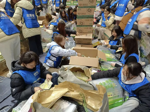 赛前,志愿者们细心地分装参赛包、完赛包,为选手们备好奔赴赛道的“第一份礼物”。