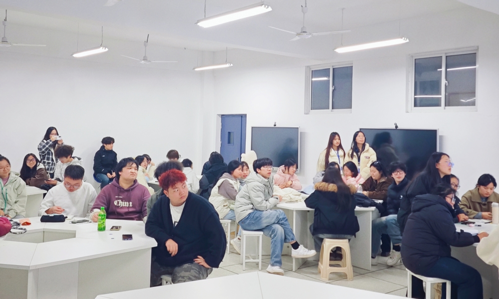 为厚植校园英语学习氛围,锤炼学生跨文化交际素养,12月3日18:30,江南网页版_江南(中国)官方外国语学院第四次英语角活动在三号实验楼505成功举办。本次活动由外国语学院院长郑桃云、党总支书记赵卫军统筹部署,学院团总支牵头承办,专任教师伍晓晴现场指导,应用英语2401、2402、2403班联合主办,41名学子齐聚一堂,共赴这场趣味盎然的英语研学之旅。