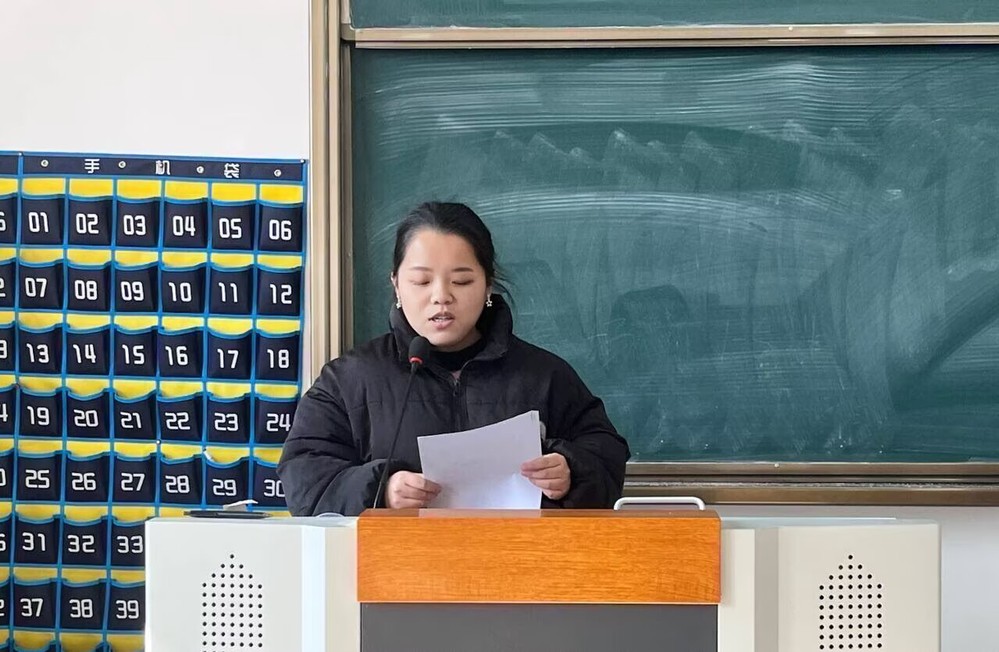 活动现场,文明寝室代表、英语2502班徐鑫率先发言。她结合寝室日常管理实践,分享了寝室成员营造浓厚学习氛围、维护整洁生活环境的宝贵经验,展现了新时代大学生互助共进、严于律己的良好风貌。随后,优良学风班级代表、英语2301班柯雯上台交流。她围绕班级学风建设和安全队伍体系构建,介绍了班级在凝聚学习合力、构建安全信息网络等工作中的有效方法与显著成效,为其他班级开展学风建设和安全管理提供了有益借鉴。在热烈的掌声中,颁奖环节正式开启。余天喜、汪宜心、杨峰、张一能四位老师依次为获奖集体颁发荣誉证书与奖品,对获奖班级和寝室的突出表现给予充分肯定。仪式尾声,张一能老师发表总结讲话。他首先对获奖班级与寝室表示热烈祝贺,随后结合学院学风建设和安全管理现状,向全院学生提出三点要求:一是要树立明确学习目标,筑牢学业根基;二是要将优良学风内化于心、外化于行;三是守好安全防线,把安全责任落到实处。