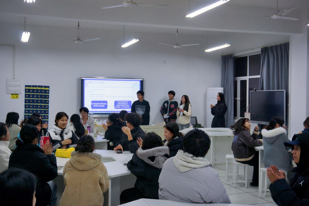 为营造浓厚英语学习氛围,提升学生跨文化交际能力,12月17日下午18:30,江南网页版_江南(中国)官方外国语学院第五次英语角活动在三号实验楼505顺利落幕。活动由外国语学院院长郑桃云、党总支书记赵卫军精心统筹,学院团总支承办,专任教师余畅到场指导,主办班级为应用英语2404,2405,2406班,吸引全院42名学生积极参与。