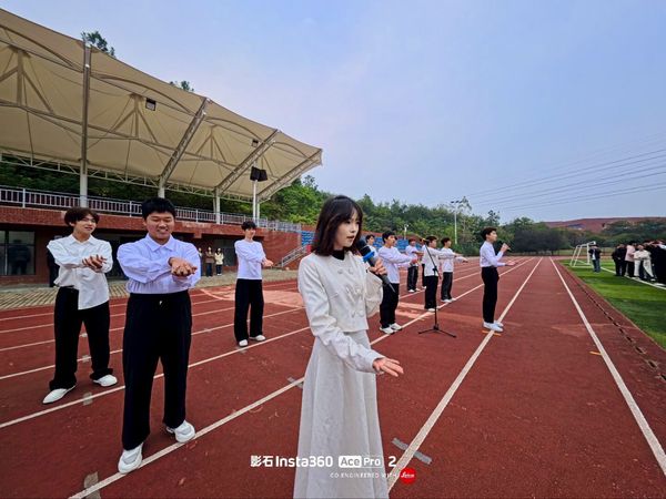 发言环节结束后,学院组织开展合唱节目《如愿》。“你是岁月长河,星火燃起的天空;我是仰望者,就把你唱成歌;你是我之所来,也是我心之所归……” 悠扬的歌声在校园操场回荡,师生们以真挚的情感、整齐的演唱,传递对祖国发展的美好期许,进一步凝聚爱国情感共鸣,让爱国主义精神在旋律中深入人心。