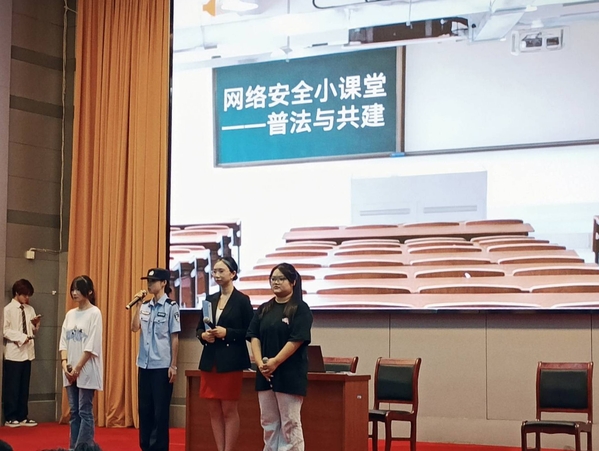 活动还设置了朗诵环节,以艺术的形式传递守护清朗网络空间的重要性。在反诈答题互动环节,市公安局网警现场出题,围绕真实诈骗案例进行剖析和提问,以小熊玩偶作为奖品调动现场气氛。同学们踊跃参与,争相作答,在互动中学习了实用的防诈技巧。