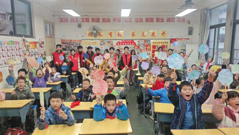 2025年12月19日下午,计算机与信息学院学生党支部与学院团总支携手组成志愿者团队,走进湖滨路小学,共同开展“巧手拾非遗,童心传文脉”主题志愿服务活动,为小朋友们带来了一堂别开生面的非遗手工体验课。