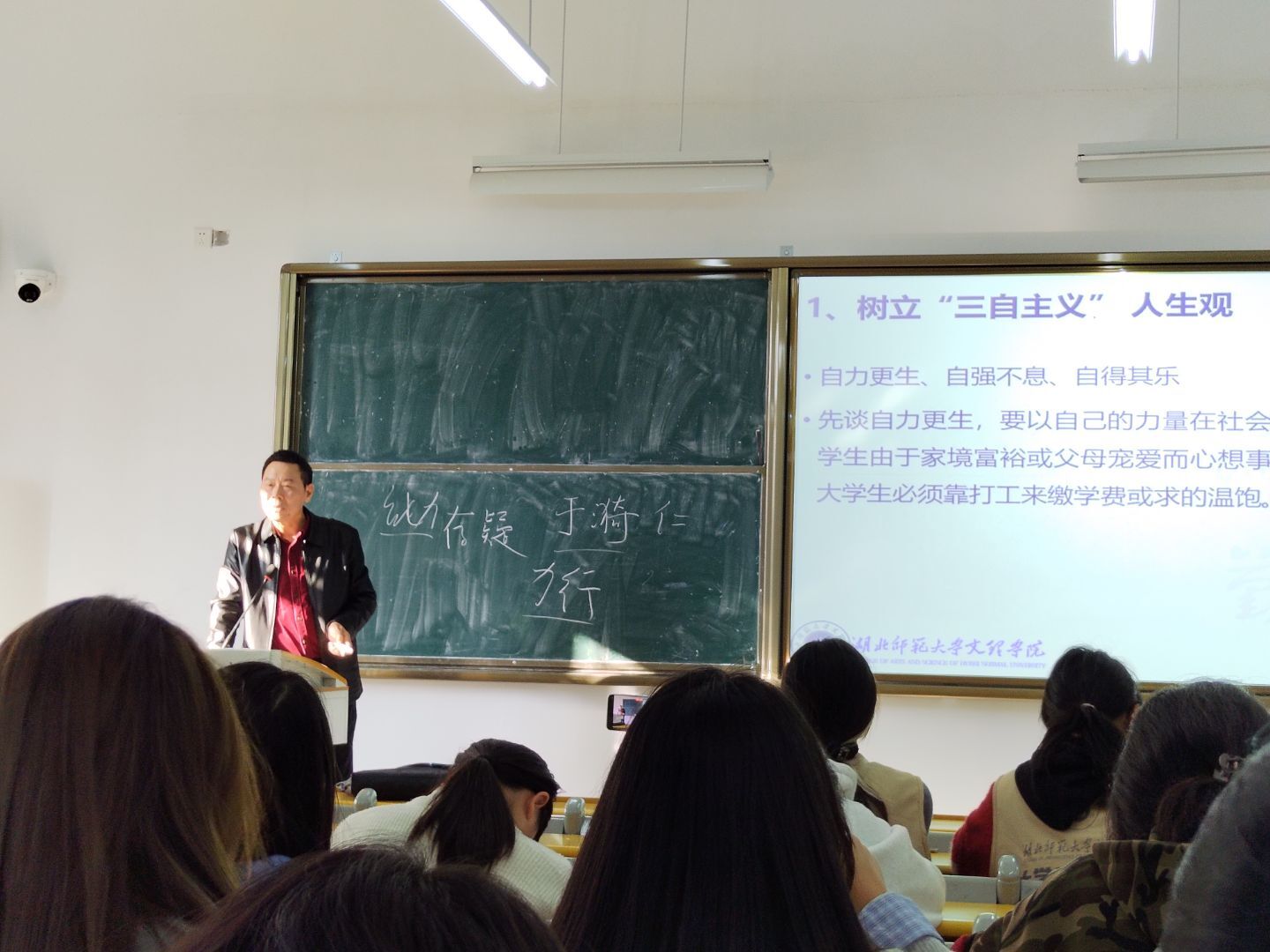 在人生目标与生命教育环节,李教授提出“追求幸福生活”的核心导向,倡导“自力更生、自强不息、自得其乐”的“三自主义”人生观。他结合尼采“精神三变”理论,鼓励大学生从“被动服从”的骆驼阶段,迈向“自主选择、勇于担当”的狮子阶段,最终实现心灵澄澈的成长境界;以希腊神话中西西弗的故事为喻,提醒同学们避免“由外到内”的目标误区,注重心灵充实与内在成长。此外,李教授还强调生命教育的重要性,引导同学们认识生命的脆弱与珍贵,培养同情心、尊重他人、珍惜自我,从“自我中心主义”走向包容与关怀,远离极端行为,筑牢人生价值根基。