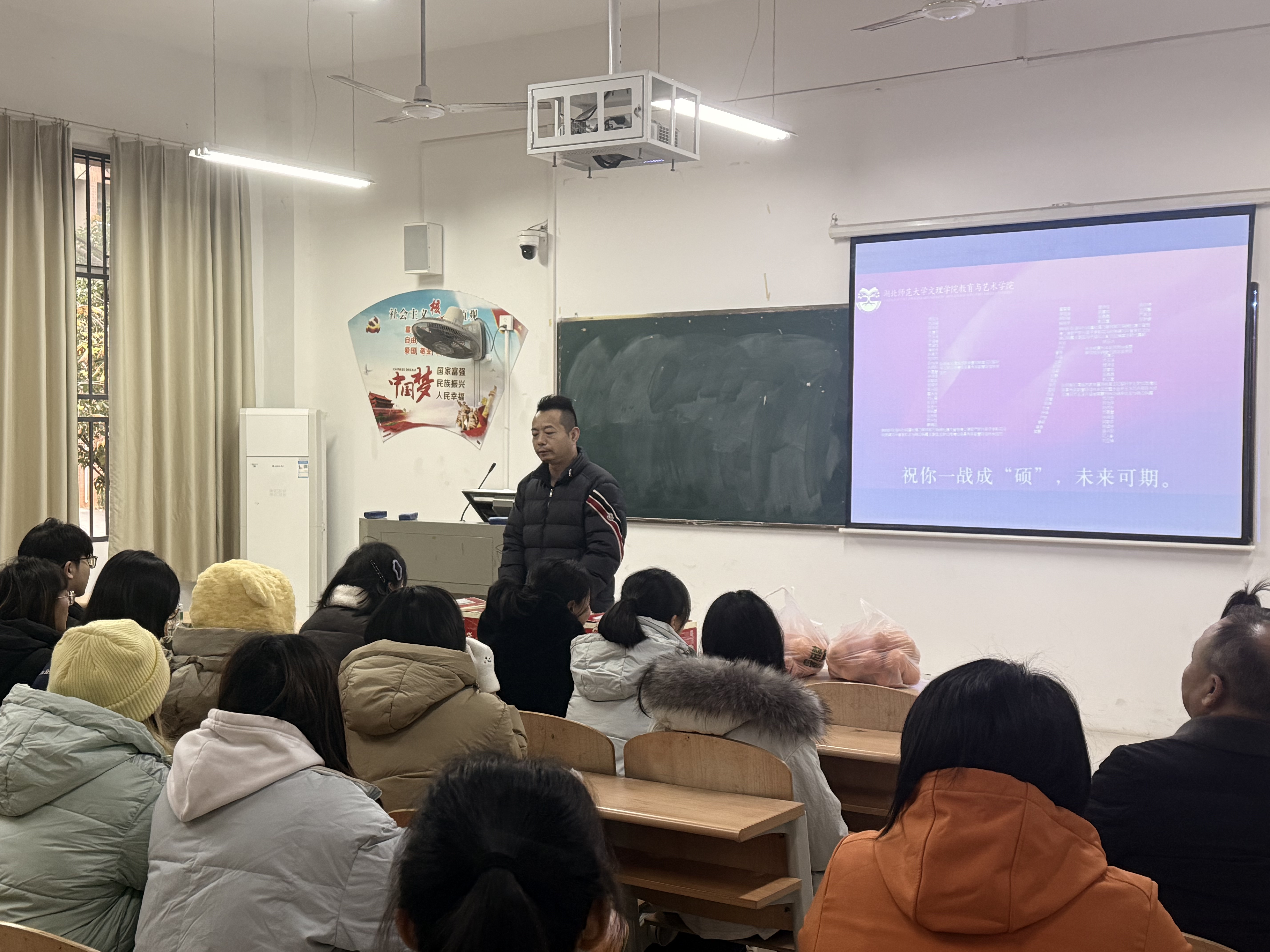 12月4日上午9时,教育与艺术学院前往考研自习室慰问考研学子,院长王文、党总支副书记陈小龙、副院长胡蕾及毕业班辅导员亲临现场,为备考学子送上慰问礼品,传递学院的关怀与期许,祝愿大家心想事成、一战成硕。