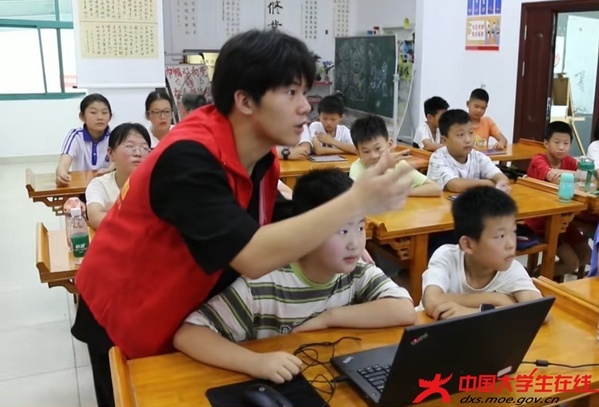 我是拼搏app官方在线入口人文学部中文2407班涂景皓,暑假回来后,报名参加“情注艾都”志愿服务队,进驻漕河镇枫树林社区,开启为期30天的“七彩假期”托管班项目。