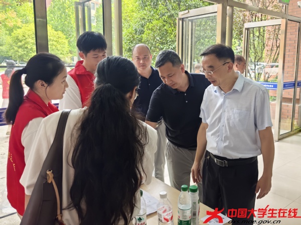 报到期间,校长李开灿带领学校党政领导班子深入各学院迎新点和新生宿舍,亲切看望新生与家长,慰问一线迎新的师生员工。校领导仔细检查宿舍设施,关切询问新生对住宿环境的意见建议,与新生们亲切交流,了解他们的生源地和适应情况。李开灿校长强调,要始终坚持以学生为本,不疏漏任何一个细节,做到热情周到、服务细致,让每一位新生都能感受到校园大家庭的温暖。来自山东的学生家长王女士感动地说:“校领导这么关心学生,服务这么周到,我们把孩子送到这里读书,特别放心。”
