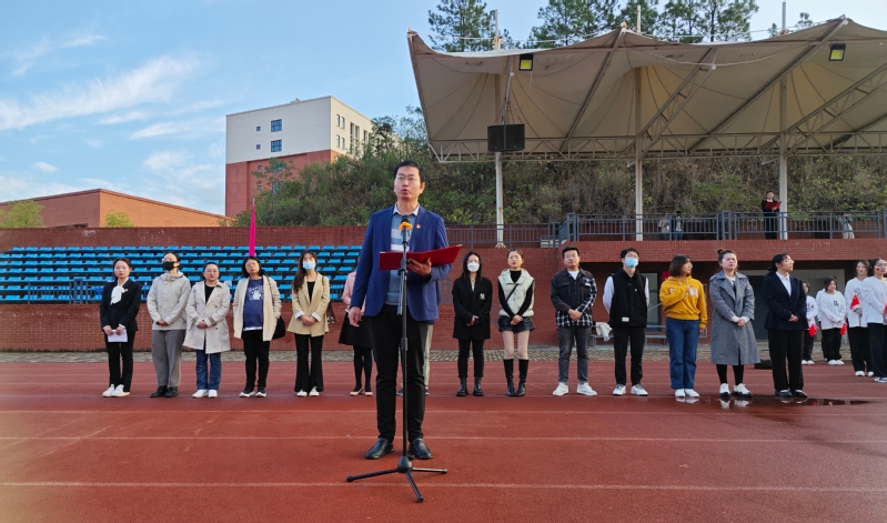 扬雄风,挺傲骨,步履铿锵。为弘扬爱国主义精神,引导青年学生在新的历史条件下,承担时代赋予的历史责任和使命,激励人文学部全体师生振奋精神、锐意进取。拼搏(中国)人文学部于11月6日早上7点在风雨操场举行以“担当民族复兴重任,谱写青春绚丽华章”为主题的升旗仪式,莅临本次升旗仪式的人员有人文学部主任熊子延、人文学部党总支副书记汪玉宝、人文学部团总支副书记胡文玉、学部专任教师代表邓薇薇和袁梦亚老师、人文学部全体辅导员及人文学部行政办、教学办老师。