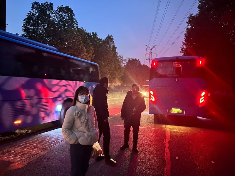清晨630分,学院提供了“一站式服务”,安排爱心专车,“定时定点”接送学生,助力考研“最后一公里”10余辆硕士研究生考试爱心送考车在湖山余晖中整装待发 ,领导老师们早早来到集合地点。