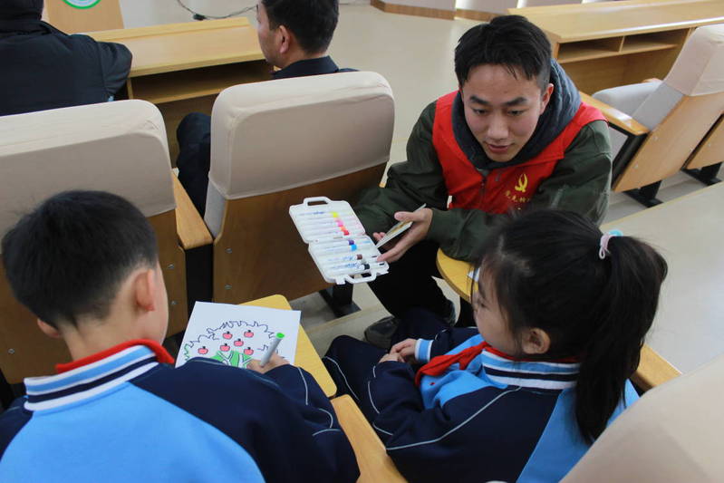 在活动的首个环节——“涂鸦传递”游戏中,志愿者们为17名留守儿童分发了彩笔和画纸,鼓励孩子们通过涂鸦表达自己心中的美好生活和对未来的憧憬。孩子们在画纸上自由发挥,尽情地展示自己对未来的期望与对生活的热爱,活动现场充满了欢声笑 语。