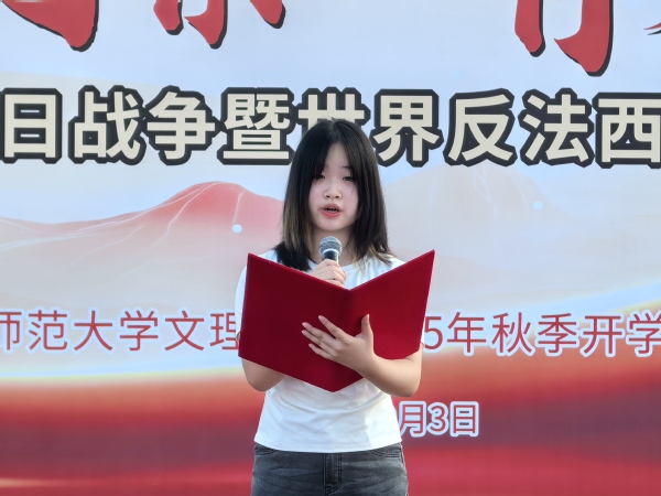 升旗仪式上学生代表陈思雨以“铭记抗战精神,共筑学风长城”为主题作国旗下演讲她表示,回望中国人民抗日战争与世界反法西斯战争岁月,无数青年以学为战、以志为矛、用知识与信念筑牢救亡图存的防线。这份“勤学救国、励志担当”的精神,正是拼搏(中国)“勤学、善思、励志、诚信”学风的深层底色。她向全体同学发出倡议,如今的我们更要不断加强学风建设,以实际行动在民族复兴的伟大征程中书写青春篇章。