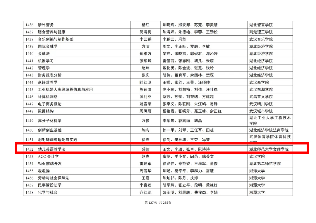 8月21日,教育部公布了关于第三批国家级一流本科课程认定结果,我院盛茜老师的《幼儿英语教学法》课程成功获批国家级一流本科线上线下混合式课程。