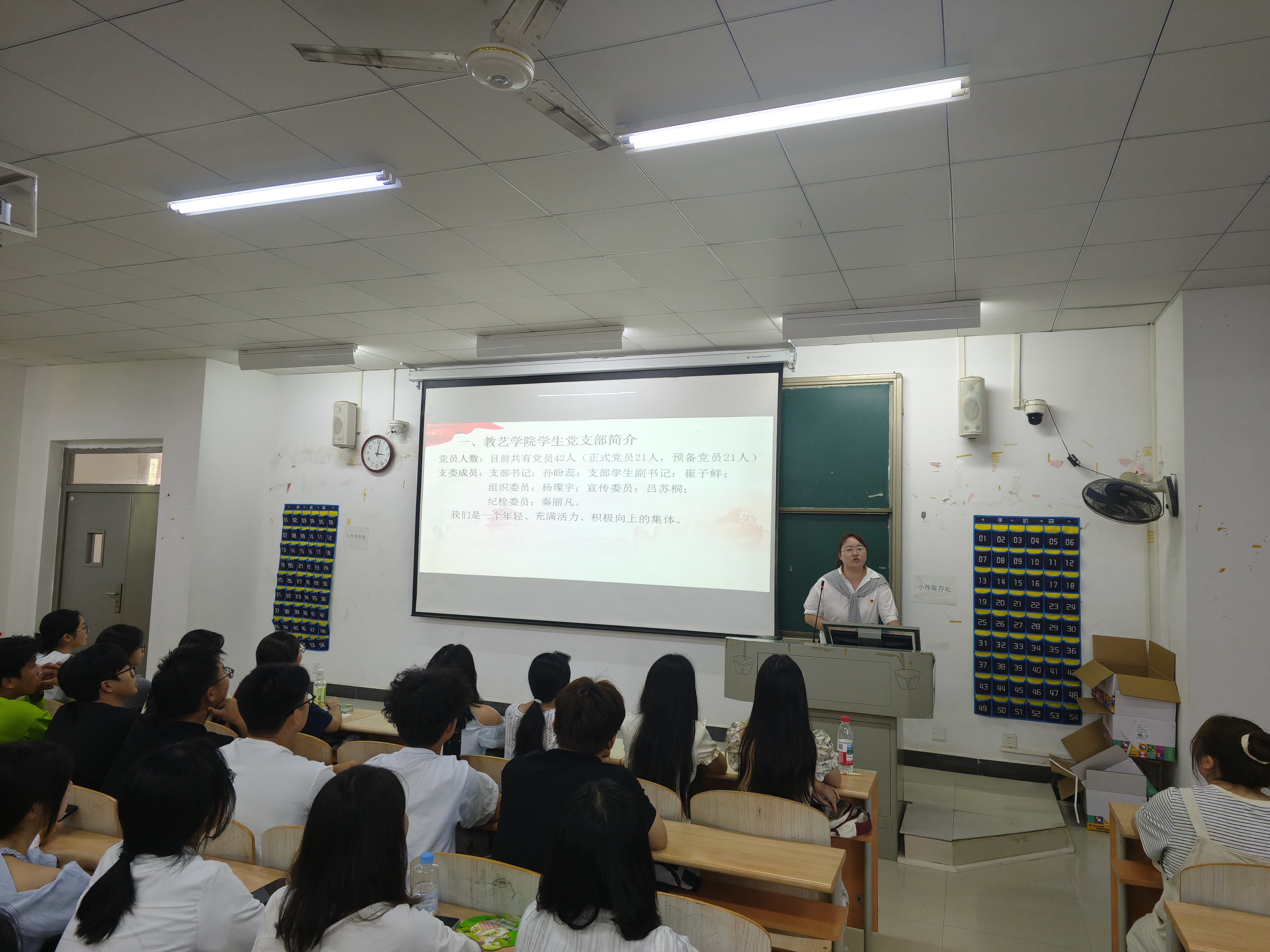 随后,崔子鲜老师结合学生党支部工作实际,从介绍教育与艺术学院学生党支部到党员五大程序二十五个步骤的发展流程,引导新生将个人成长规划与学院发展、国家需求紧密结合,同时通过介绍党支部特色活动,倡导新生主动参与志愿服务、学术实践等活动,在知行合一中锤炼品格、增长才干。