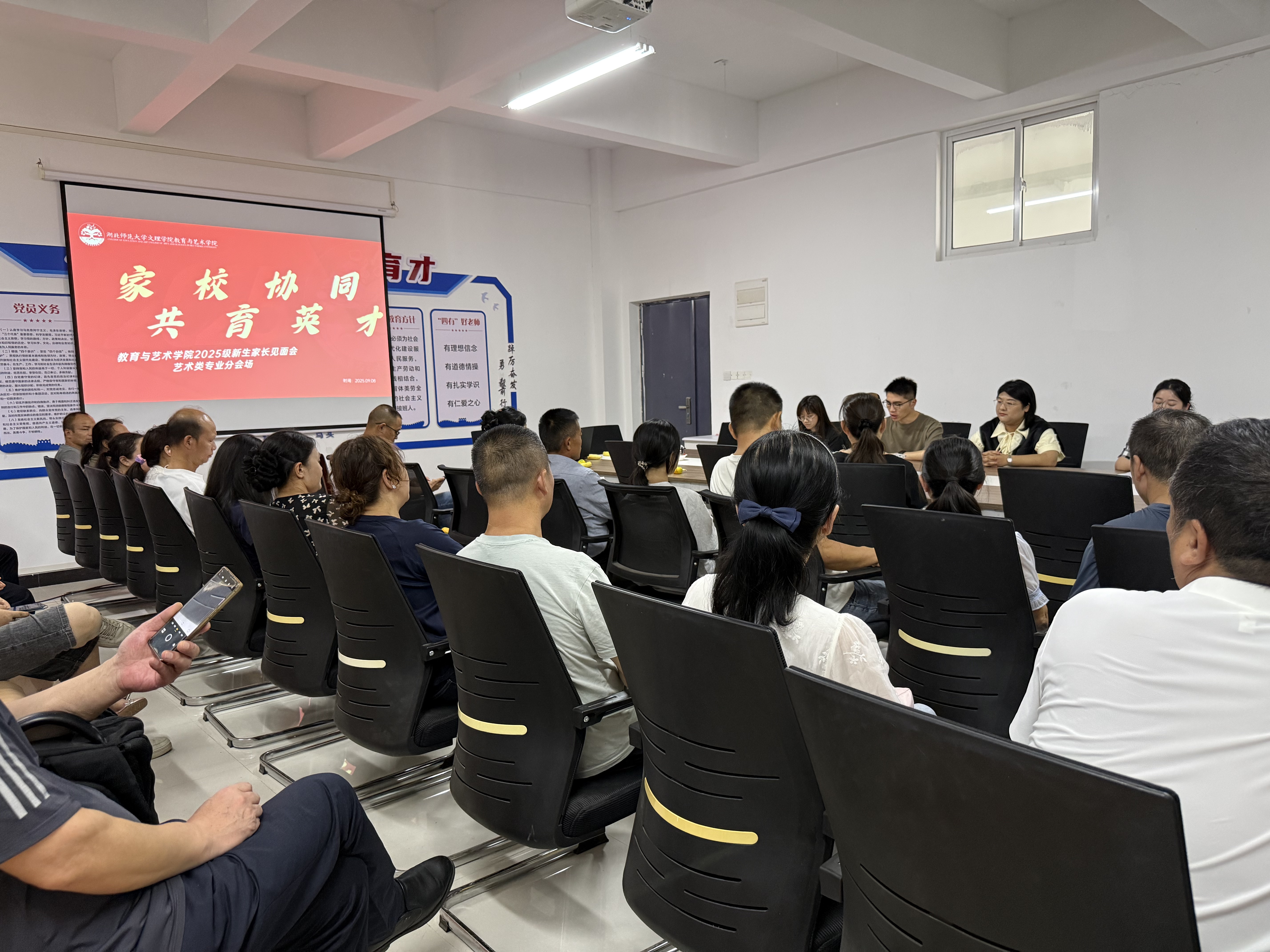 2025年9月8日中午12时,拼搏app官方在线入口教育与艺术学院以“主会场+分会场”“线下+线上直播”模式,在图书馆报告厅举行2025级新生家长见面会,获家长热烈响应。教艺学院院长王文教授、副院长胡蕾、党总支副书记陈小龙、各专业负责人及资深教师,全体辅导员参加会议。